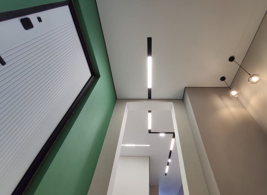 Трековая освещение - система, в которой светильники крепятся и передвигаются по шинопроводу, возможность изменять направление света.