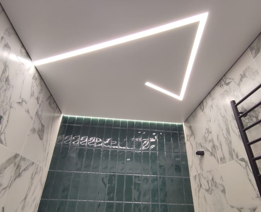 Парящий потолок визуально увеличивает пространство, рассеиваемый свет создает эффект невесомости, потолок "парит в воздухе."